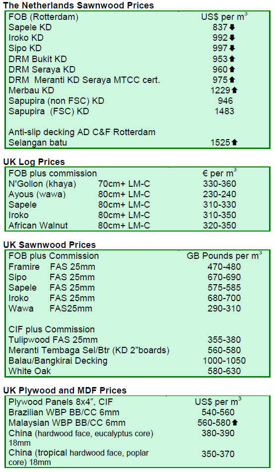 In a report on the central European market for Indonesian and Malaysian raw and film-coated boards in May, EUWID suggests that ¡°high repurchasing prices mean that European buyers are now less interested in buying these products. Chinese and Russian grades continue to act as substitutes for South East Asian plywood. A number of agents and importers reported that a few South-East Asian plywood grades were increasingly turning into niche products that were only sought by a few buyers and for specific applications. Moreover, existing inventories are mostly large enough to meet the current demand in Europe, meaning that hardly any new contracts had been signed.¡±