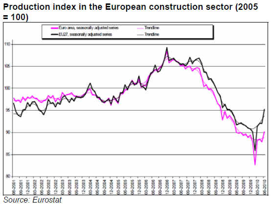 The more positive news from the European construction sector data is, of course, the sharp upturn in activity that began in April 2010. The upturn slackened again in May but then resumed in June in the run up to the summer vacation. It is not possible to say with any degree of certainty that this upturn will be sustained, particularly with continuing talk of a possible ¡°double dip¡± recession in the EU largely stimulated by concern over levels of debt and the introduction of deep government spending cuts. But the upturn in overall European construction activity in the April to June period at least bodes reasonably well for the finishing trades in the second half of 2010. With overall European hardwood lumber stocks still at very low levels, importers should keep buying, although business will remain very price driven and volumes are likely to remain much lower than in the past.