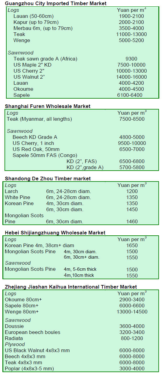On 28 October 2010, the Ministry of Commerce of China announced the export quotas for agricultural and industrial products for 2011. Sawnwood export quota will be 260,000 cu.m in 2011. The decree declares that qualified applicants can send their applications for exports to local commercial affairs bureau or directly to the Ministry of Commerce during the period from 1 to 15 November 2010.