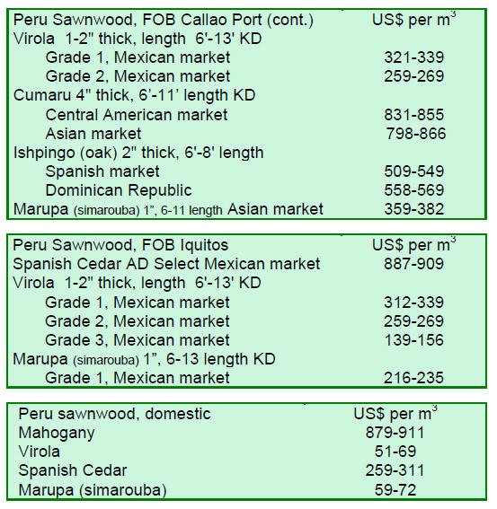 1. CENTRAL/ WEST AFRICA Sustained log demand from India and China For the West and Central African producers, sustained log demand from India and China is expected to maintain the stability in price through the first quarter. No price changes for logs and sawnwood are reported during the period under review, although, some producers are of the opinion that log prices for the prime species may firm up in the next few weeks. Prospects for sawnwood dependent on recovery in Europe Sawnwood prices will continue to be responsive to sudden fluctuations in demand as well as to how quickly producers are able to match supply with demand. For example, it is reported that the price of sapele sawnwood is once again weakening following expansion in its production despite falling demand. Generally, sawnwood prices have remained unchanged during the past four weeks. Cameroon to re-impose log export quota Meanwhile, there are continued rumours that Gabon may relax the total log export ban imposed since April 2010. Some observers were expecting an announcement of the relaxation last month but to date there is no indication of an imminent change. There is speculation that Congo Brazzaville may follow Cameroon in re-imposing the log export quota which has been relaxed to assist producers through the global recession in 2008/09. Buyers are observing the situation keenly as any changes may affect log supply and prices which have remained stable in the second half of 2010.