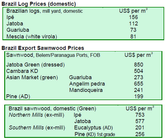 Timber trade remains quiet following holidays For sawnwood, undressed greenheart fetched favourable prices for all qualities except sound quality. Undressed purpleheart prices hit US$890 per cu.m in select quality while undressed mora prices continued to hold. However, prices for dressed greenheart and purpleheart were slightly down in the period under review. Guyana¡¯s Washiba (Ipe) attracted an average price of $US1,150 per cu.m. Dressed bulletwood (Macaranduba) reached US$954 per cu.m, dressed kabukalli (Cupiuba) US$975 per cu.m and undressed locust (Courbaril) US$1,166 per cu.m with the Asian, Caribbean and North American markets being the main destinations. Roundwood and fuelwood made notable contributions to the total export earnings with favourable prices in this fortnight period. Splitwood prices also held on a high level of US$956 per cu.m. For the period under review, exports of value-added products were limited. Some products such as doors and mouldings made from crabwood (Andiroba), locust (Courbaril), kabukalli (Cupiuba), purpleheart (amarante) and tauroniro (Cumaru) contributed to total export earnings.