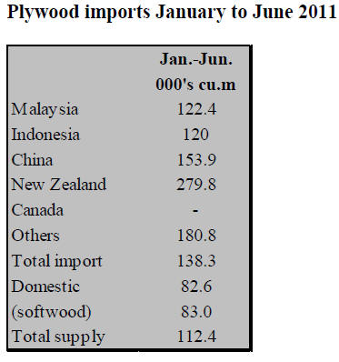 formboard 3x6 (JAS) prices are Yen 1,100 per sheet