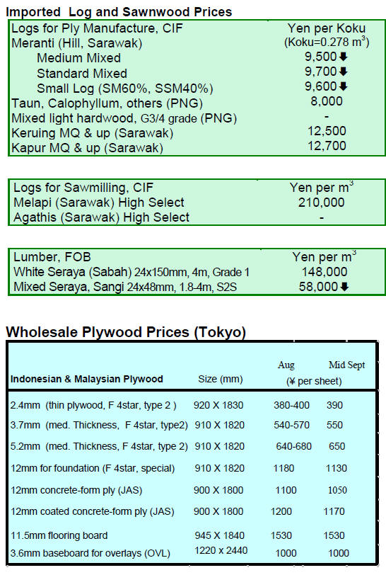 quality prices are US$270-300 per cu.m FOB, US$30-40