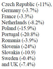 These declines are only partly offset by gains in Spain (+2.8%), Latvia