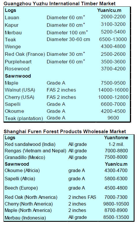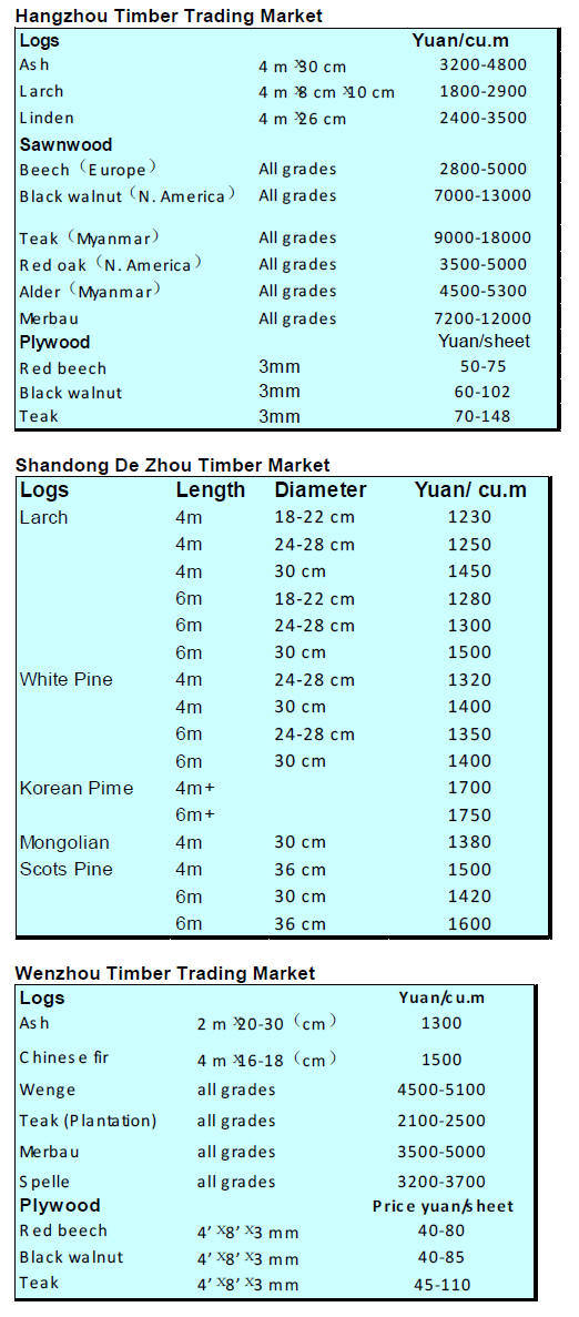 In the first quarter of 2013, China imported 250,000 cubic metres of