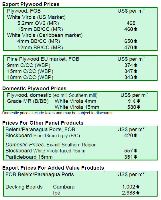 at top end FOB prices of US$205 per cubic metre. There were no exports of
