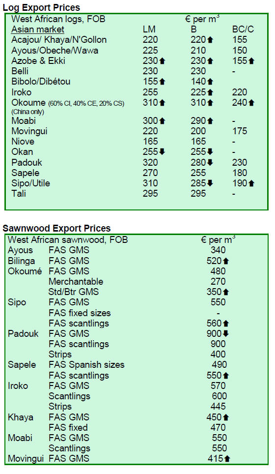 from US$1,166 to US$1,060 per cubic metre FOB.