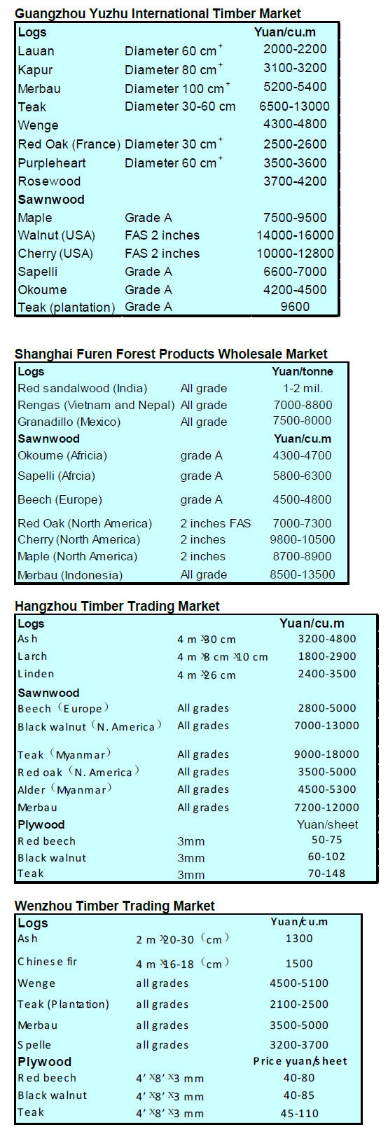 many years. Timber imports through Zhangzhou Ports in