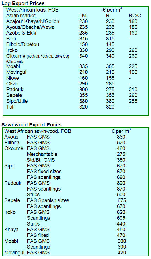 ranging from US$125 to US$140 per cubic metre FOB. Prices have since