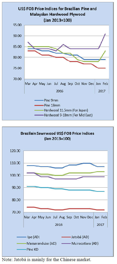 Tropical plywood exports from Brazil increased