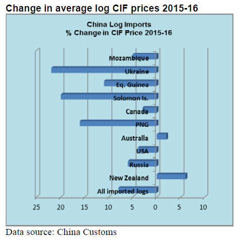 Tropical log imports in 2016 totalled 9.1 million cubic
