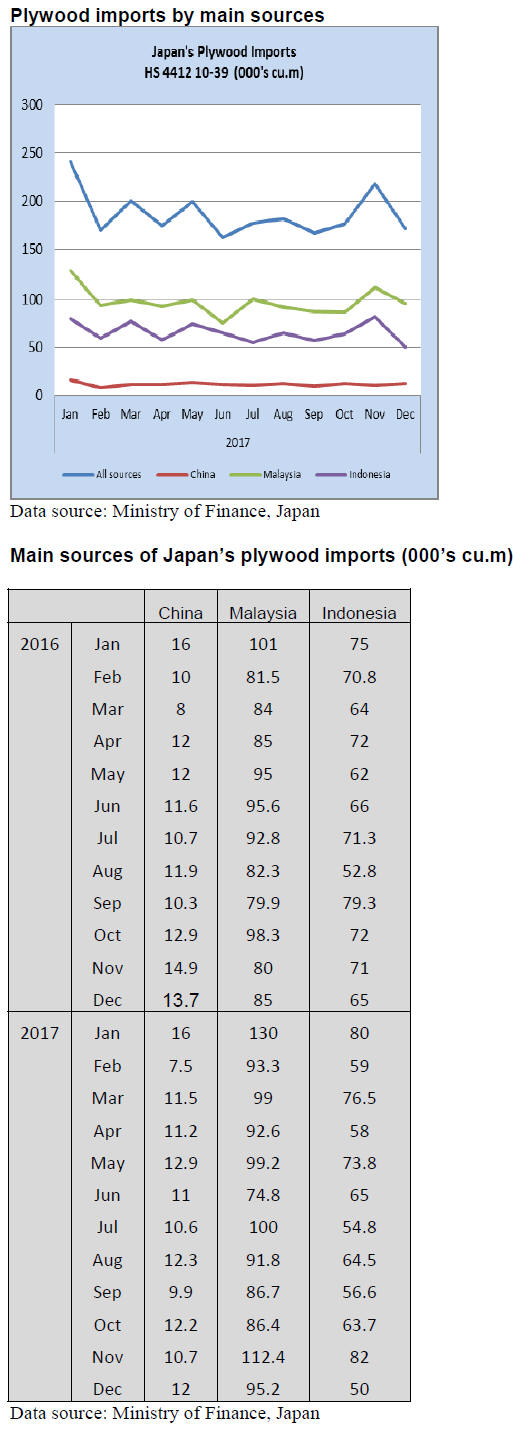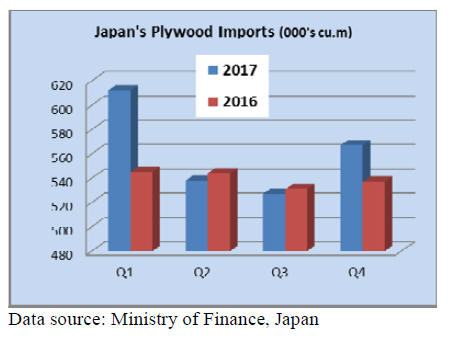 Japan¡¯s plywood imports in 2017 at almost 250,000 cu.m