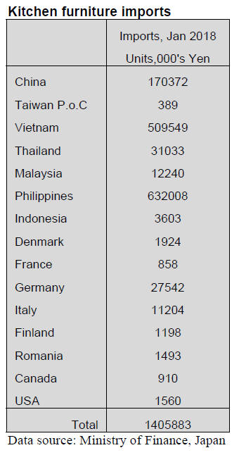 kitchen furniture in January 2018. Month on month,
