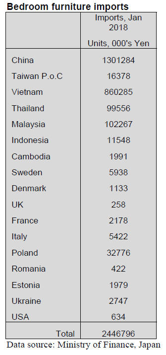 The value of Japan¡¯s January 2018 wooden furniture