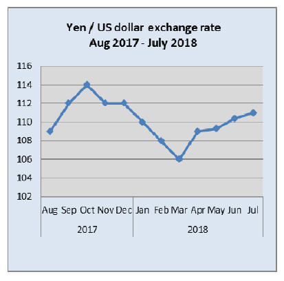 second half of July the yen moved to 112 to the dollar but