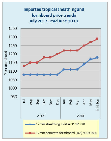 C grade logs are 8,500 yen per cbm delivered. Prices of