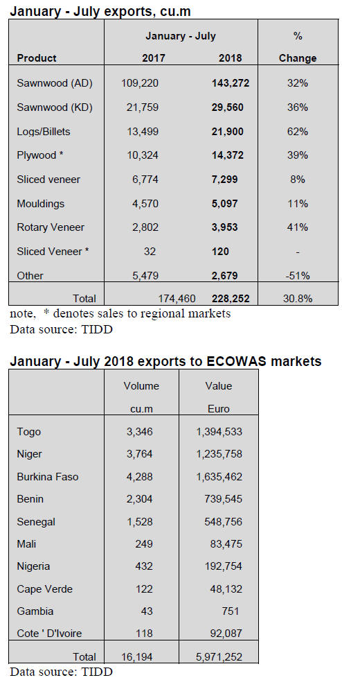 increase in sawnwood exports to the Philippines since