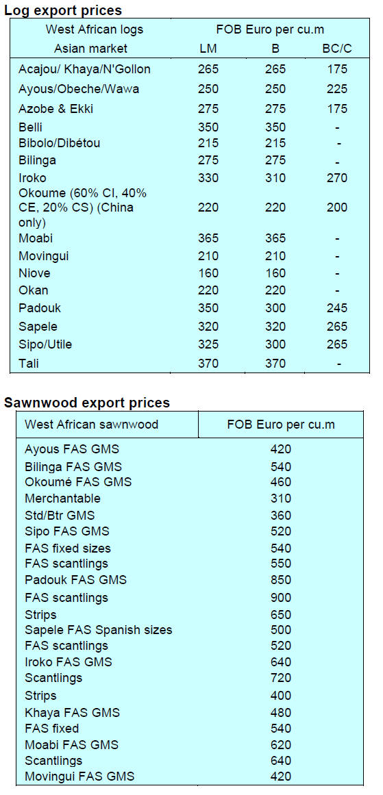Sawnwood exports were worth US$17.1 million FOB in