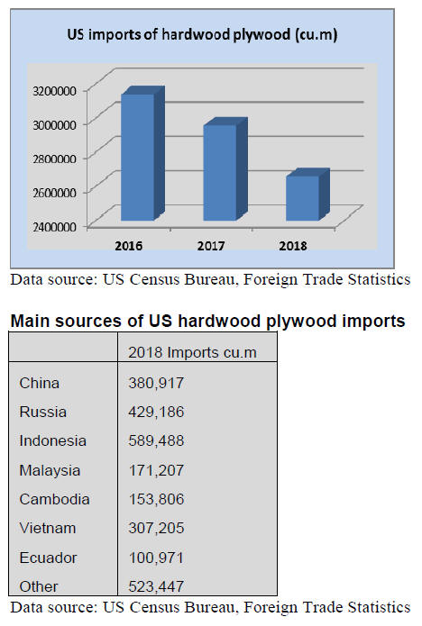 US hardwood plywood imports fell in 2018