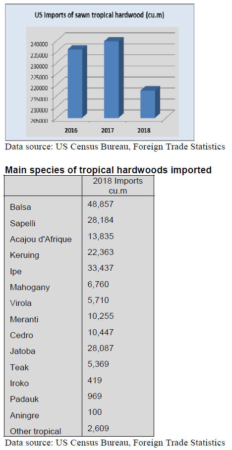 US imports of sawn tropical hardwood ended 2018