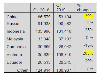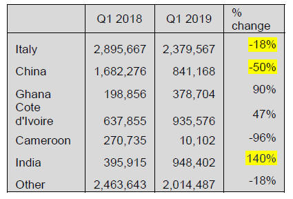 Sharp drop in shipments from Cote d¡¯Ivoire