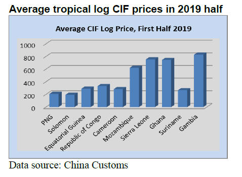 The value of tropical log imports in the first half of 2019 was US$1.27