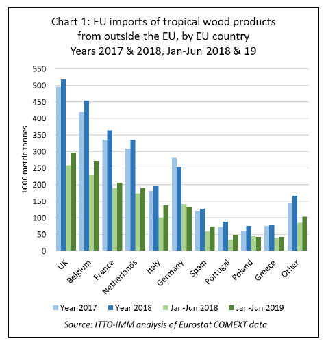Much of the gain in Netherlands tropical wood imports in 2018 was in