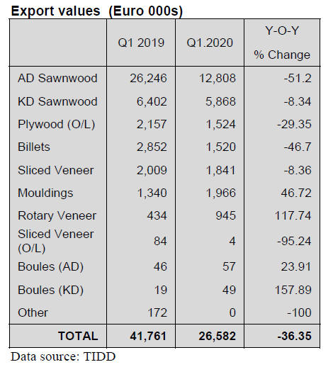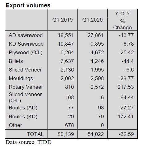 The main market for sawnwood in the first quarter was