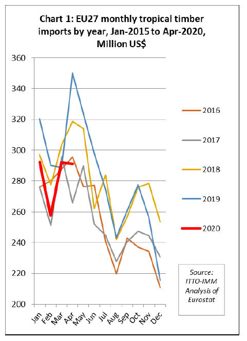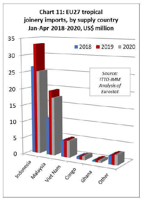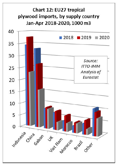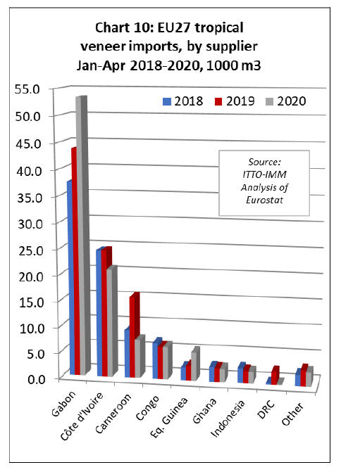 months of 2020. The EU imported 53,400 cu.m of veneer