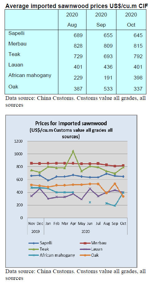 timber exports to China fell 7.6% to 19.2 billion yen.
