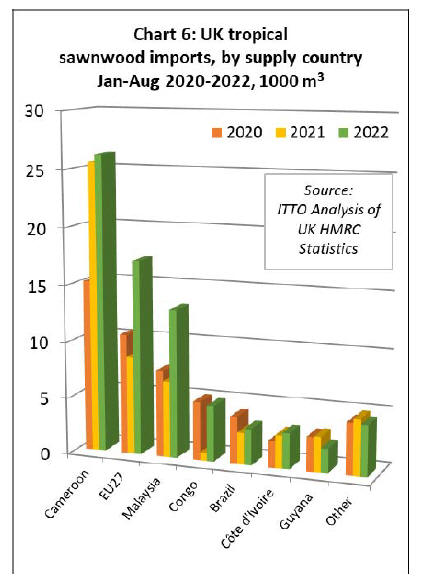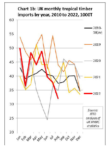 154,600 cu.m of tropical hardwood plywood, 21% less