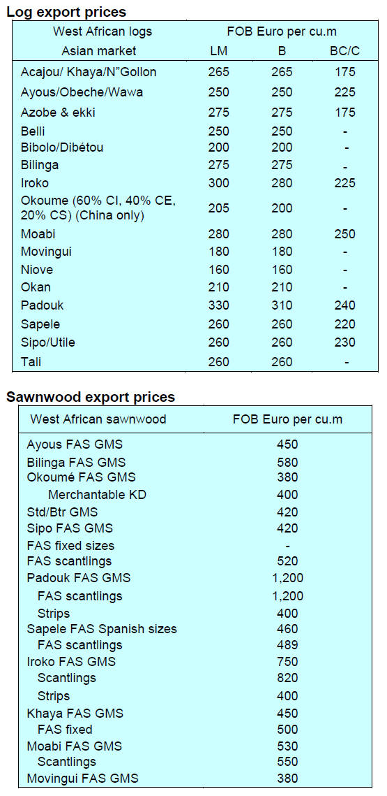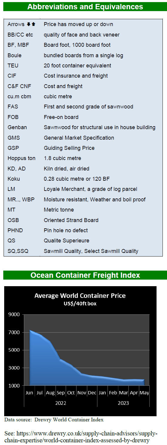 As for tropical plywood, exports declined in volume by 64% and in value by