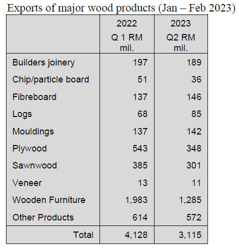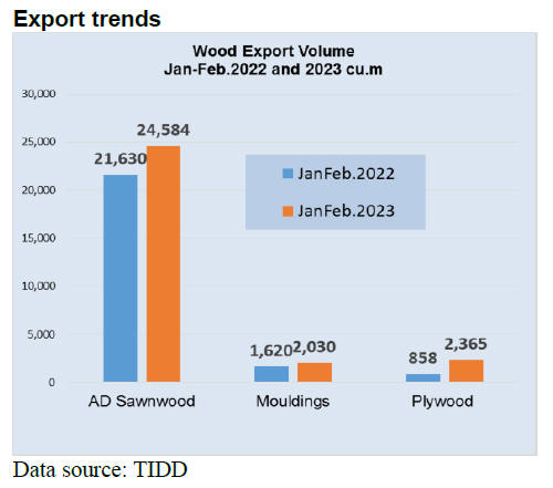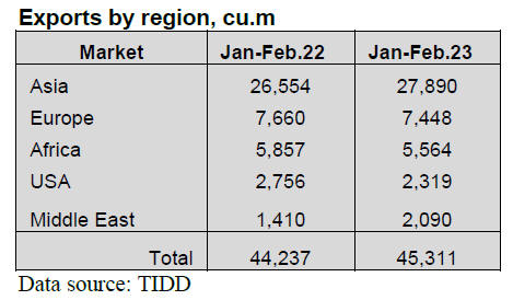 During the first two months of the year the sawnwood subsector exported