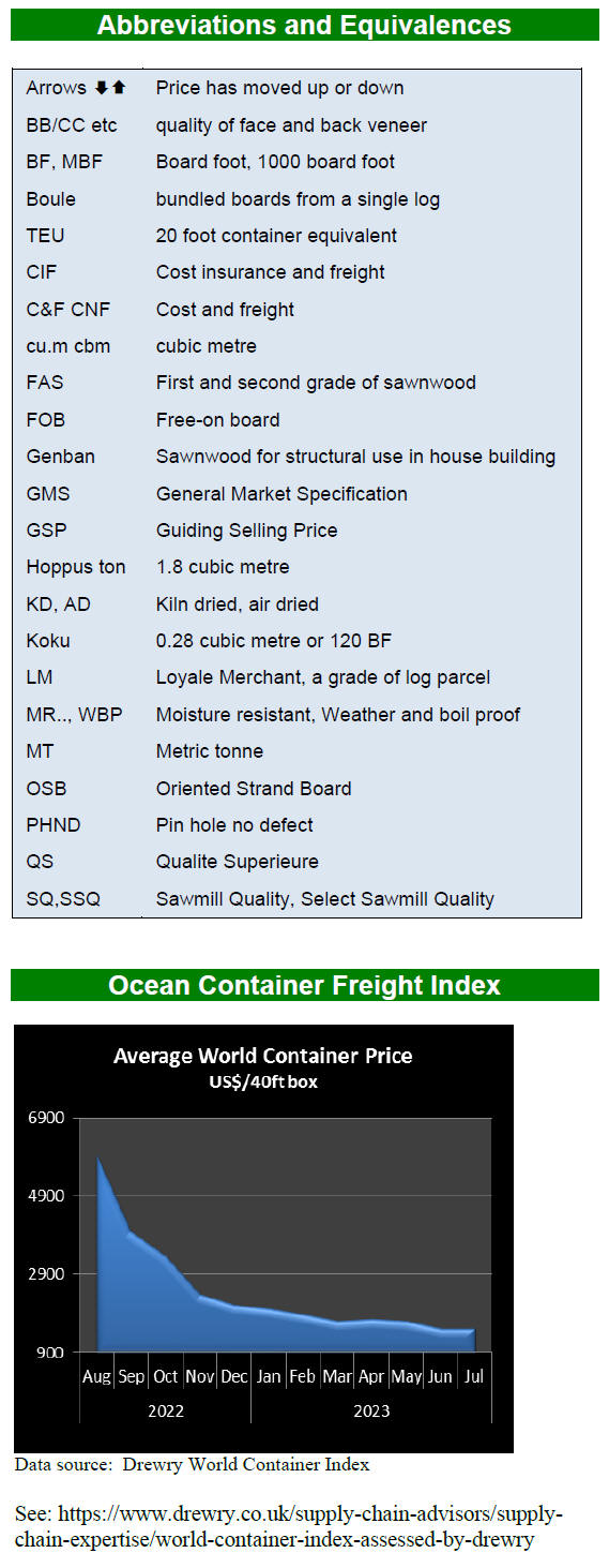 A slowdown in demand in Asia for species such as okoume and redwoods has