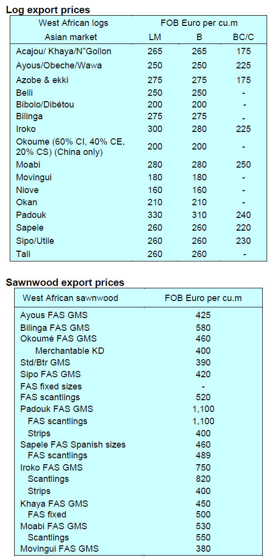 demand for okoume and ayous is weak while, for other species such as