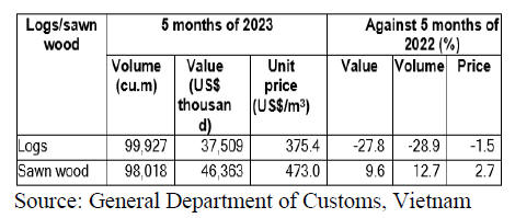 three months of 2023, the others being air and kiln dry sawnwood and