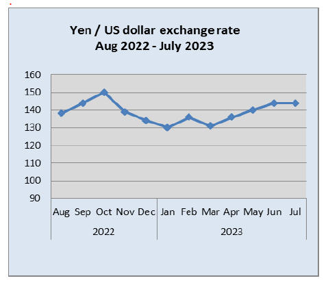 yen, delivered per cbm. Also, there is an influence of the weak yen for