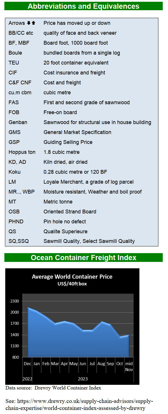 in log deliveries to mills. In Gabon, heavy up-country rain