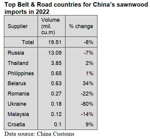 from top Belt & Road countries, Thailand (3.85 mil. cu.m,
