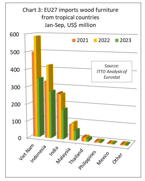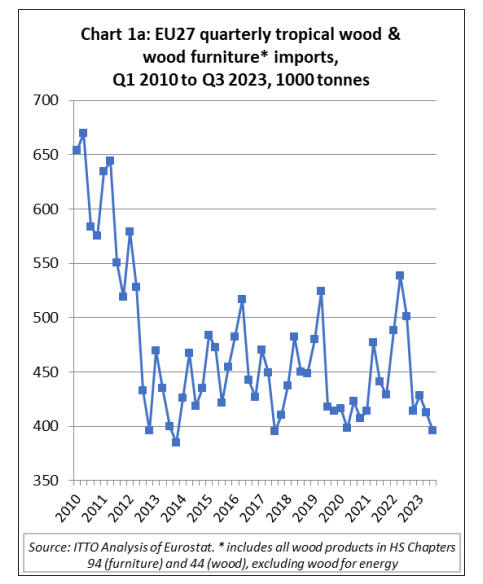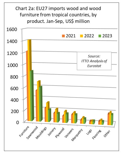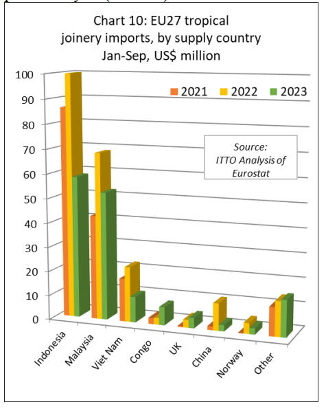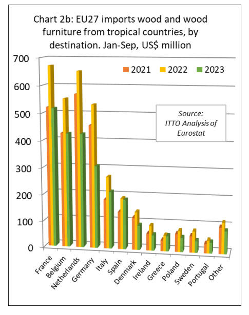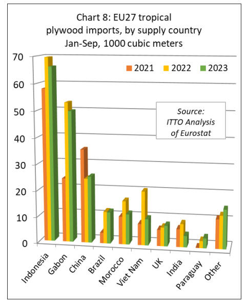 from Cameroon (-9% to 246,800 cubic metres), Gabon (-