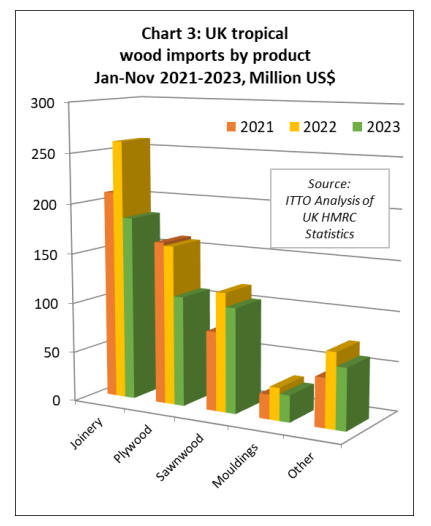 UK imports of tropical sawnwood were 92,346 cu.m in the