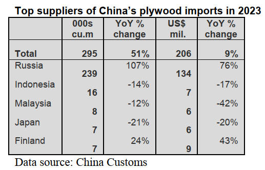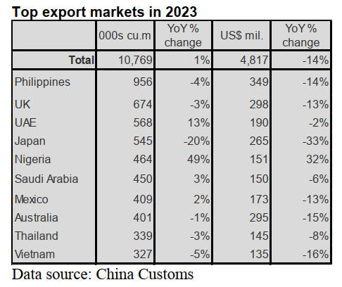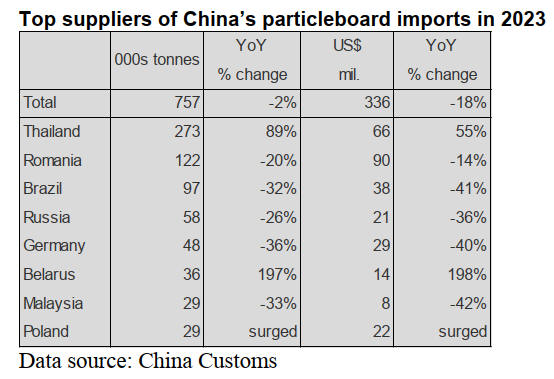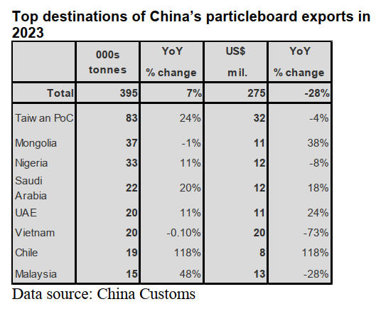 particleboard exports in 2023, up 24% to 83,000 tonnes