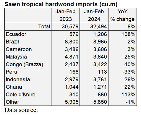 and Cameroon (up 13%). Imports of Mahogany rose 67%