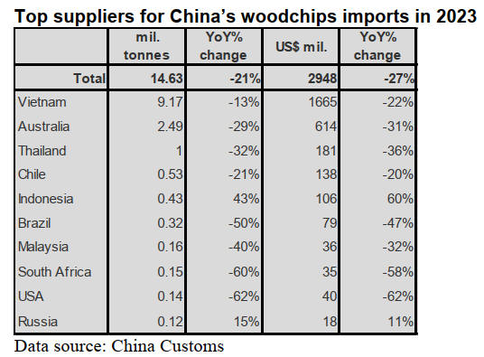 According to China Customs, woodchip imports in 2023