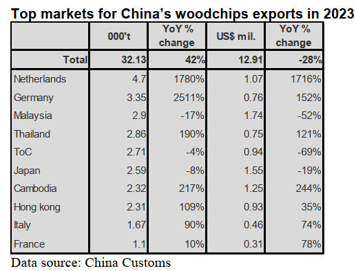 second largest markets for wood chipsfrom China in 2023.
