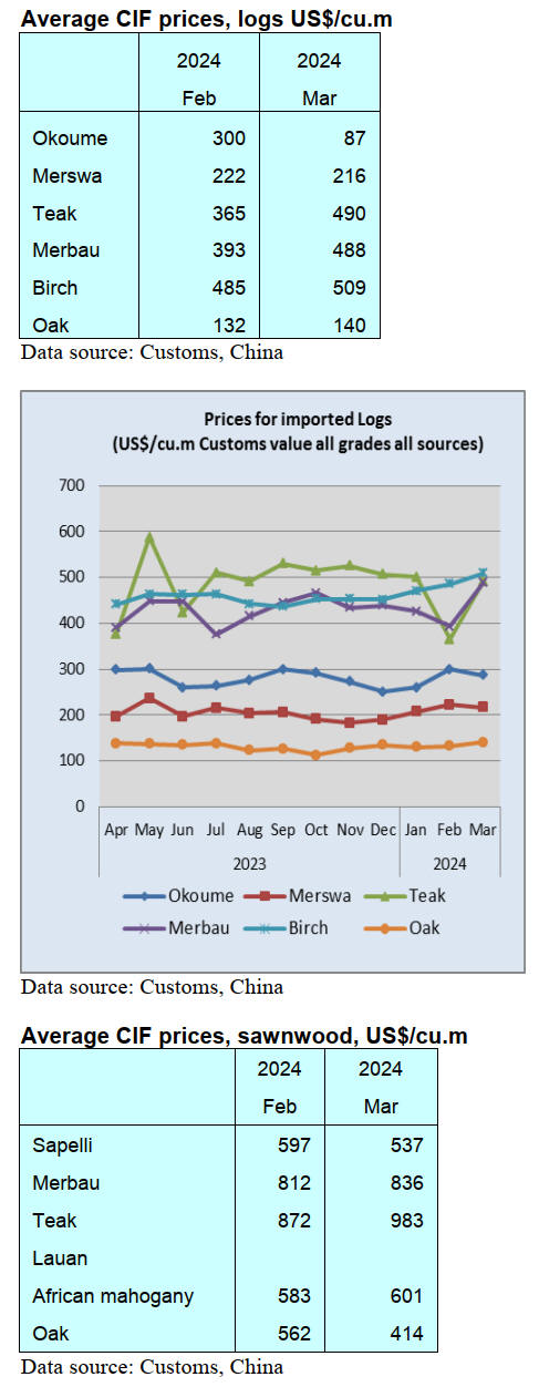 However, the country's cumulative imports of logs and