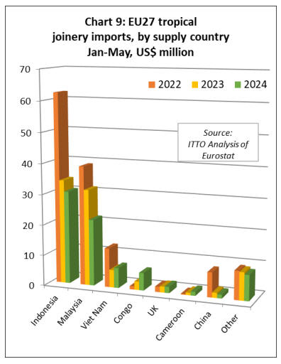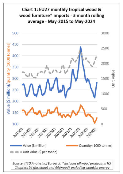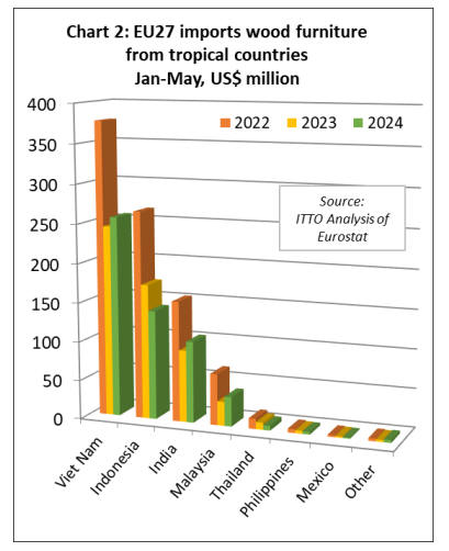 EU27 tropical wooden furniture imports rise after a