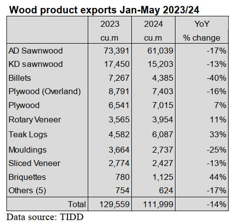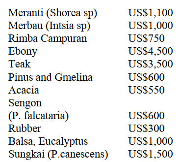 for sawn okoume KD dropping to Eur400 per cubic metre