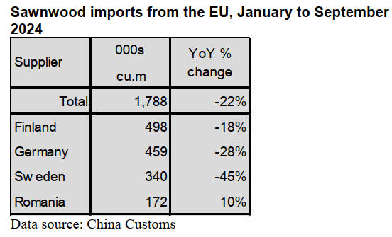 China’s tropical sawnwood imports from Gabon rose 38%.