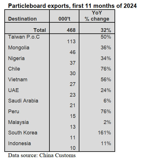 11 months of 2024. China’s particleboard exports to South